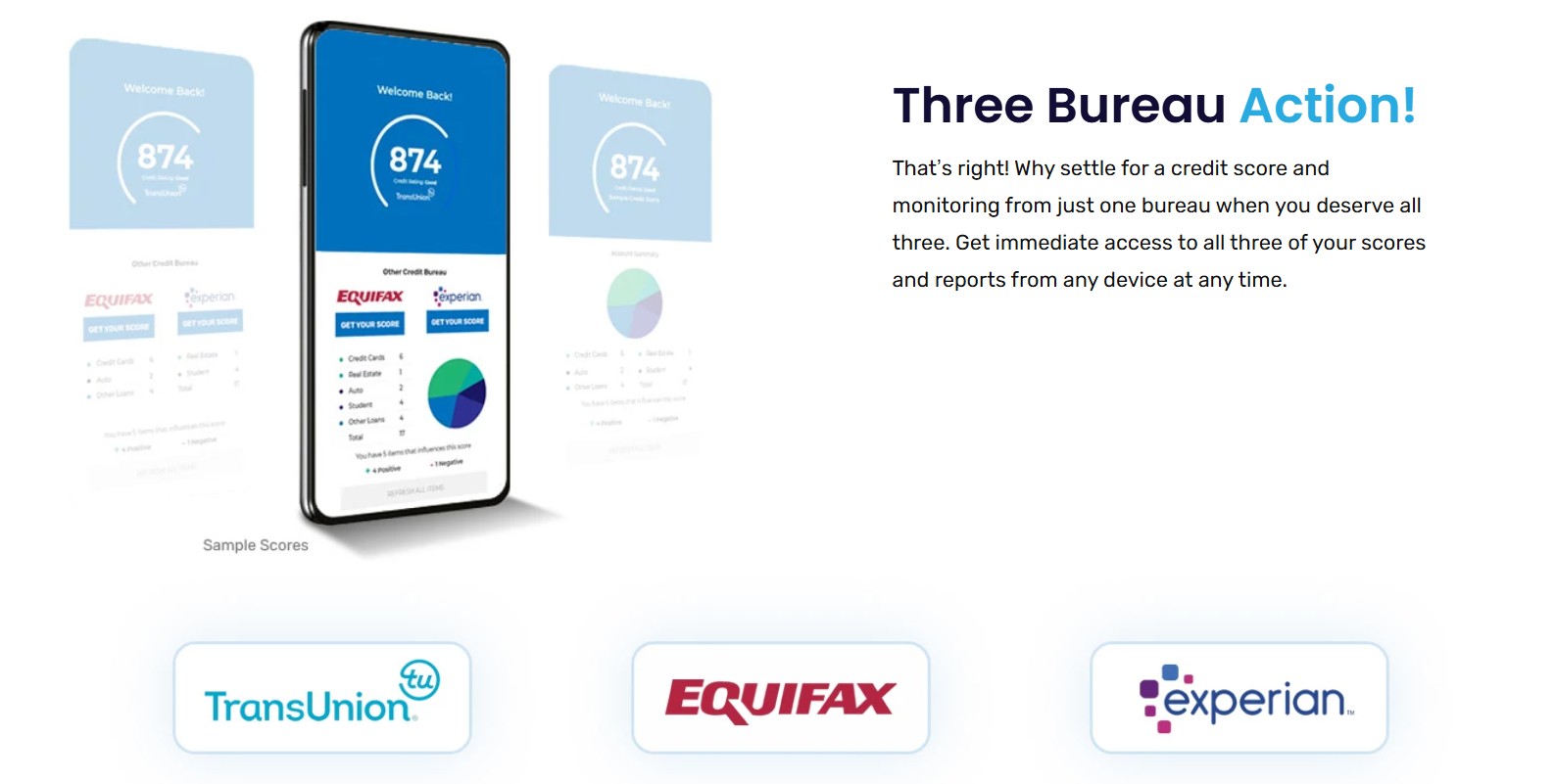That’s right! Why settle for a credit score and monitoring from just one bureau when you deserve all three. Get immediate access to all three of your scores and reports from any device at any time.